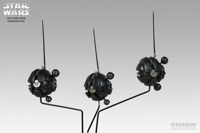 Deployed in a trio, the compact, black probes scour the streets of Mos Espa and the surrounding landscape for Naboo’s queen, their observations and findings reported back to their master in regular updates. Blistering with the most advanced detection equipment, including multispectral imaging lenses and the keenest scanners, little escapes the probes’ notice, and they are tireless in their search.