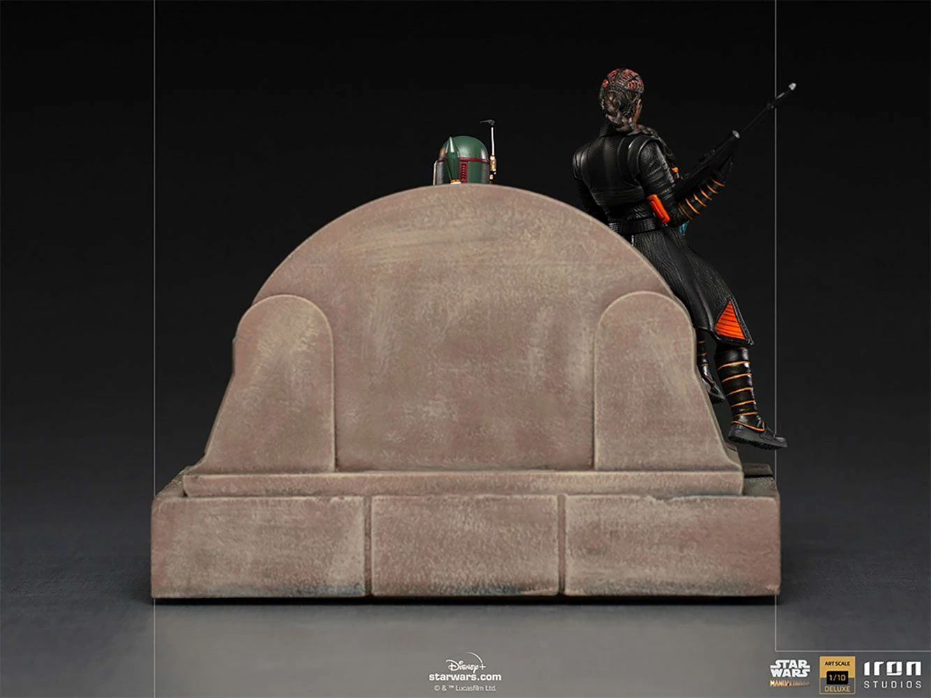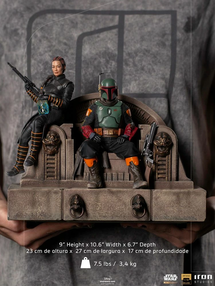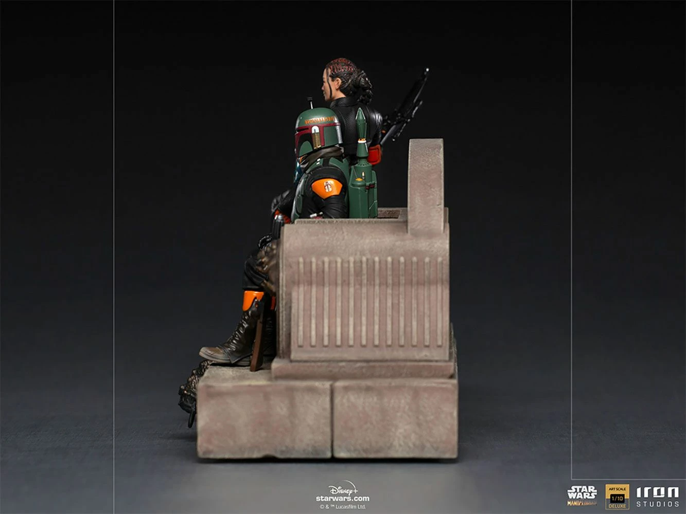 Sideshow and Iron Studios are proud to announce the latest from the Art Scale 1:10 line – Boba Fett & Fennec Shand on Throne Deluxe! This Star Wars Collectible Art Scale Statue is limited edition and comes with a detailed hand-painted base.