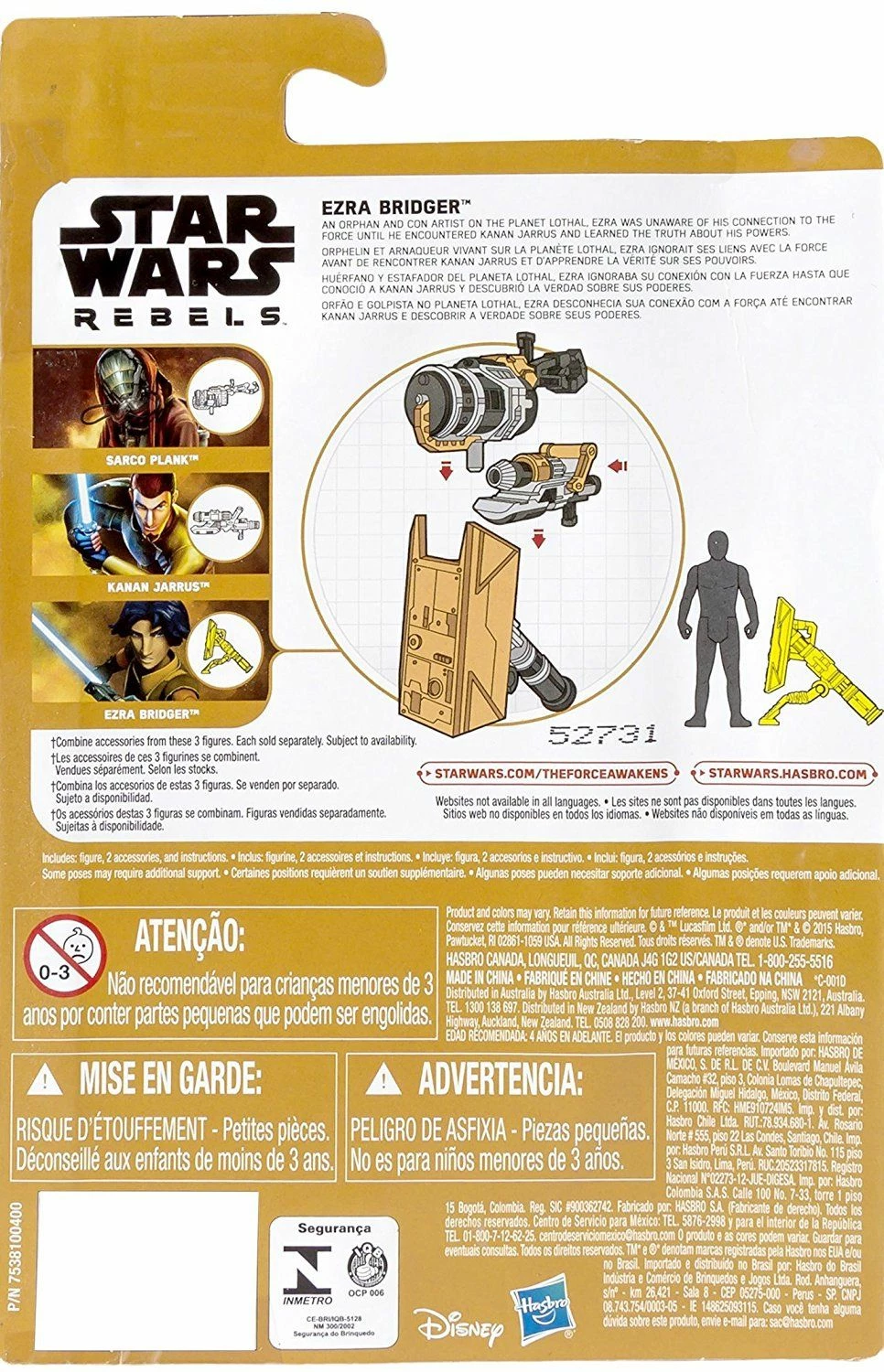 - Ezra Bridger’s shield combines with weapons from Kanan Jarrus and Sarco Plank packs to build a larger, even more powerful weapon! (each pack sold separately)